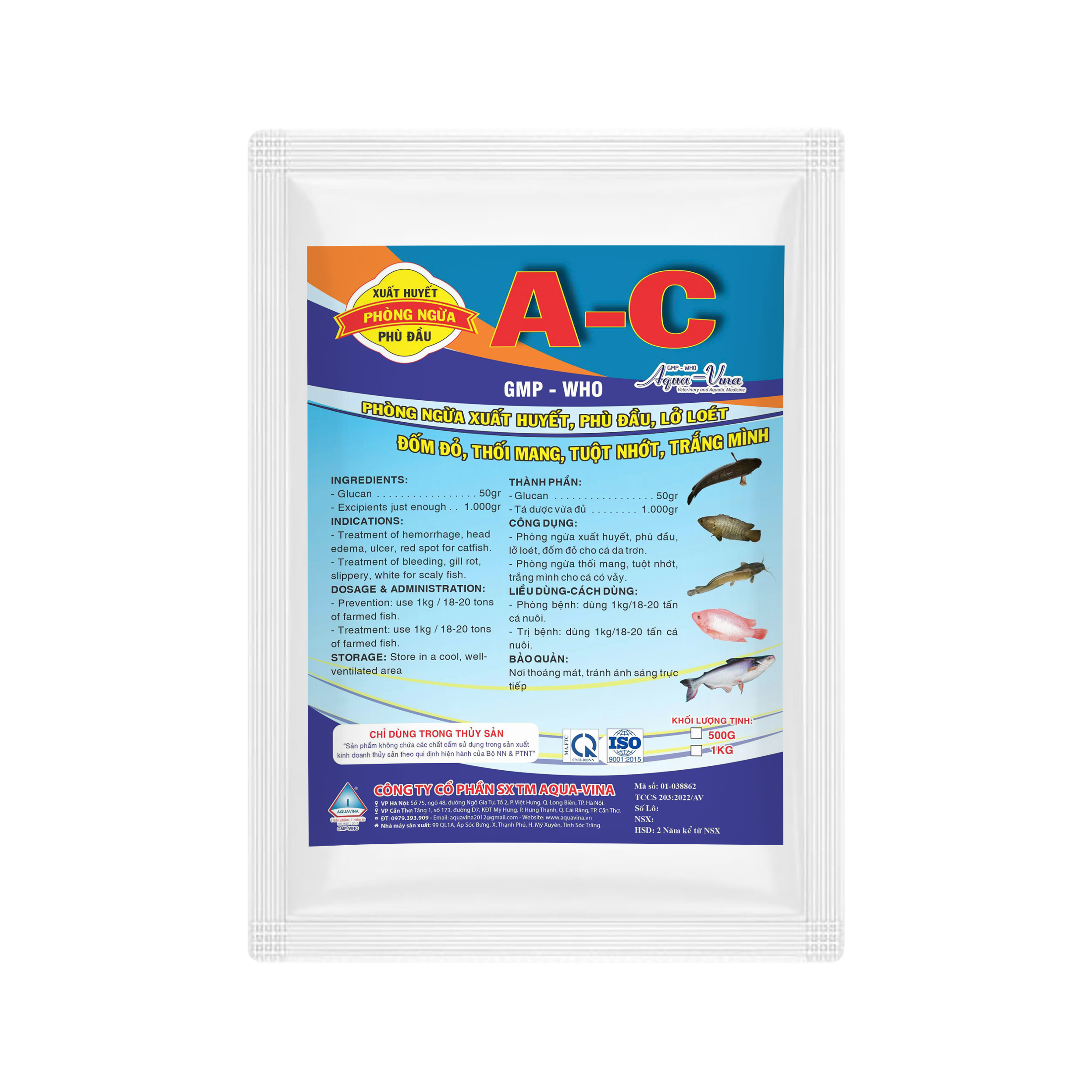 Đặc trị xuất huyết, phù đầu, lở loét, đốm đỏ, thối mang, tuột nhớt, trắng mình…